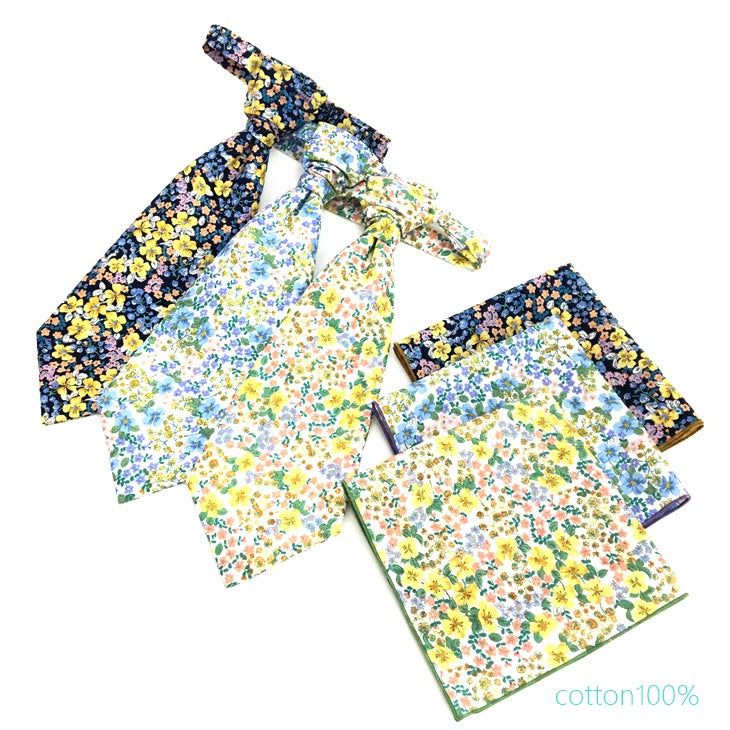 ●商品名・・・バロックタイ ポケットチーフ スクエア コットン セット ユーロタイ アスコットタイ リバティ―フラワー 3タイプ